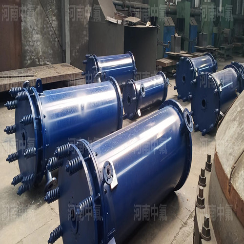 想到圆块孔式石墨换热器,就会知道它的构造结构是需要石墨块来作为原材料使用的,圆块孔式石墨换热器需要一系列的制造工艺进行组装试压合格装配才能完成,圆块孔式石墨换热器是由很多个环形截面的浸渍石墨块来组装组成的,要确保石墨块上的孔流道是通的,不然就会发生堵塞,石墨块之间需要用O形圈来密封严谨。石墨块处理妥当后则需要装配在钢制的圆筒壳体内。在每块石墨块上会有很多的平行于轴线和垂直于轴线径向的圆孔流道来保证水介质的流通,把石墨块装在圆筒壳体内以后,会在上下的部分都装有浸渍石墨集流分配盖,以此来作为被处理介质的进口与出口使用,装进的石墨块每相间隔两块的连接处都会有环形外折流板。与外折流板块体的之间中心管处还设置有内折流板,圆块孔式石墨换热器的壳体外面都会有长螺栓借力拉紧。